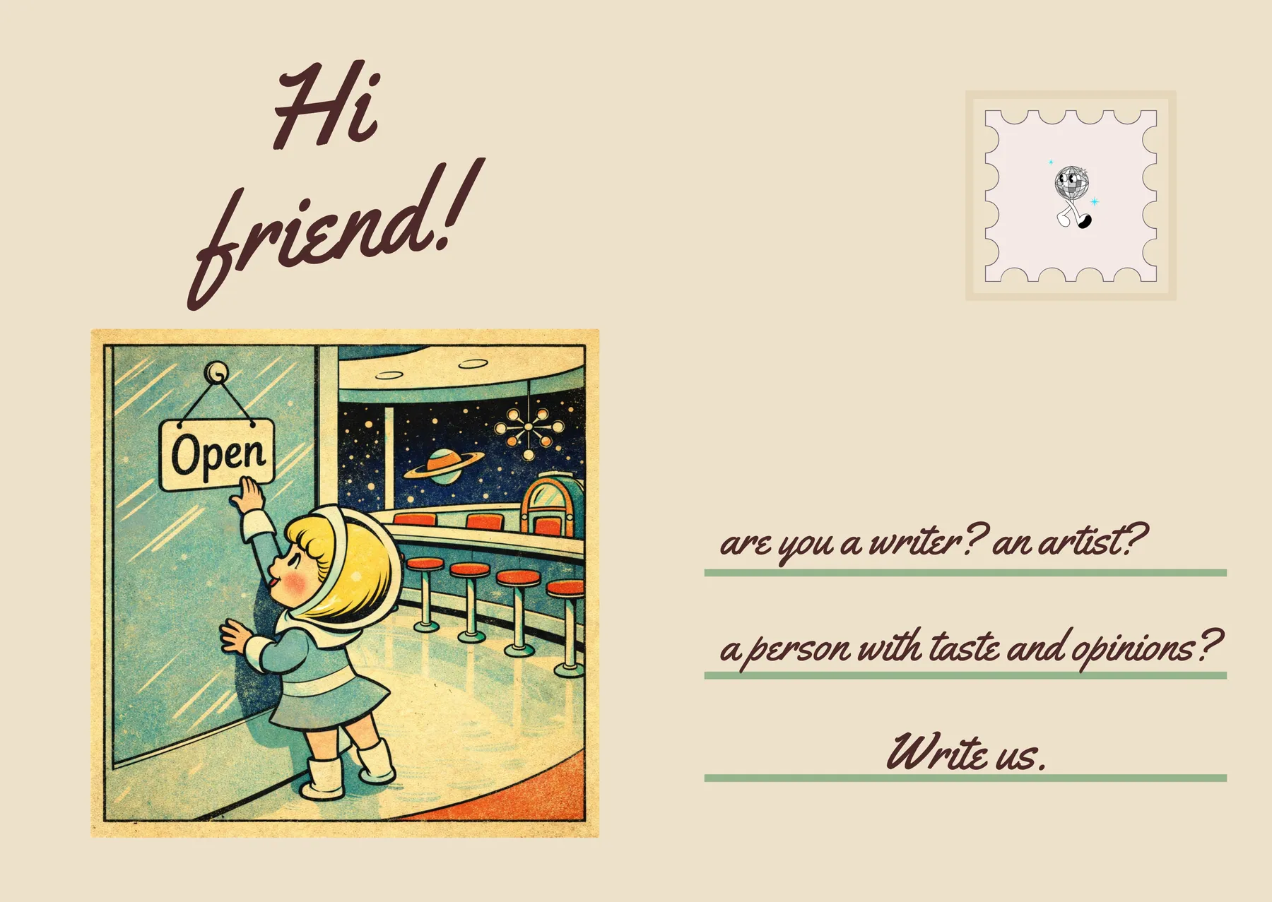 We have a particular weakness for opinionated reviews, essays on your obsessions, recommendations for overlooked films/music/writing/art, reflections on culture moments long passed, and profiles. We seek personality, not perfection.